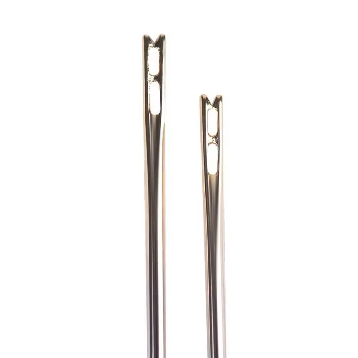 Simplemente deslice su agujas de hilo en a través de la parte superior se divide en el ojo. Tan fácil de usar.