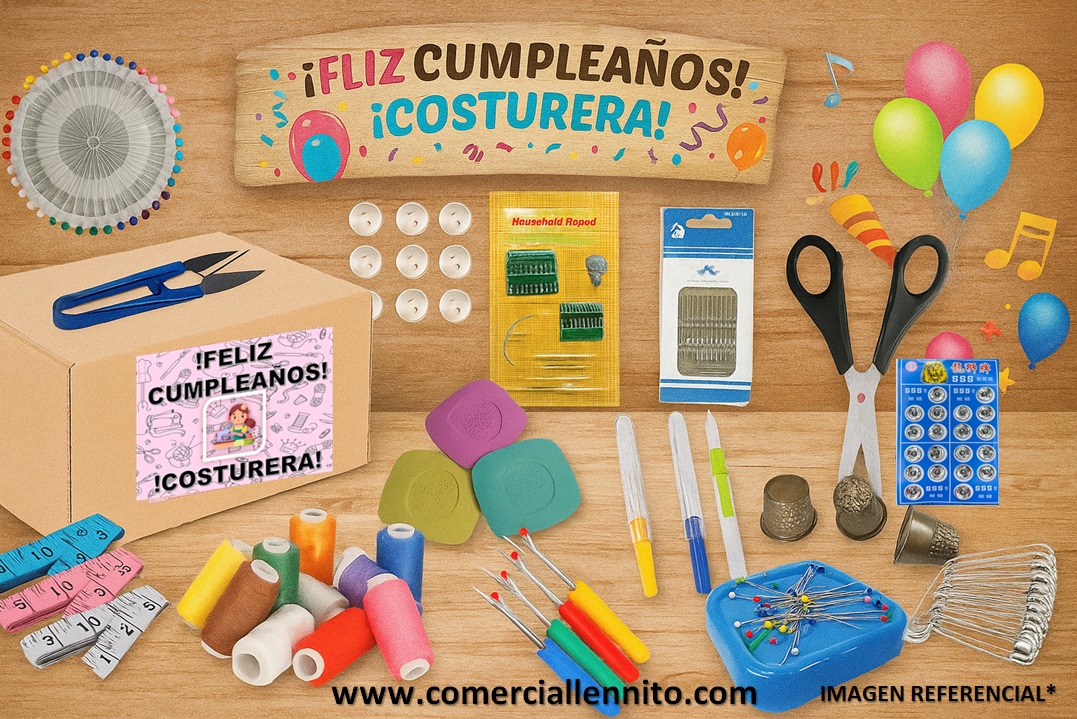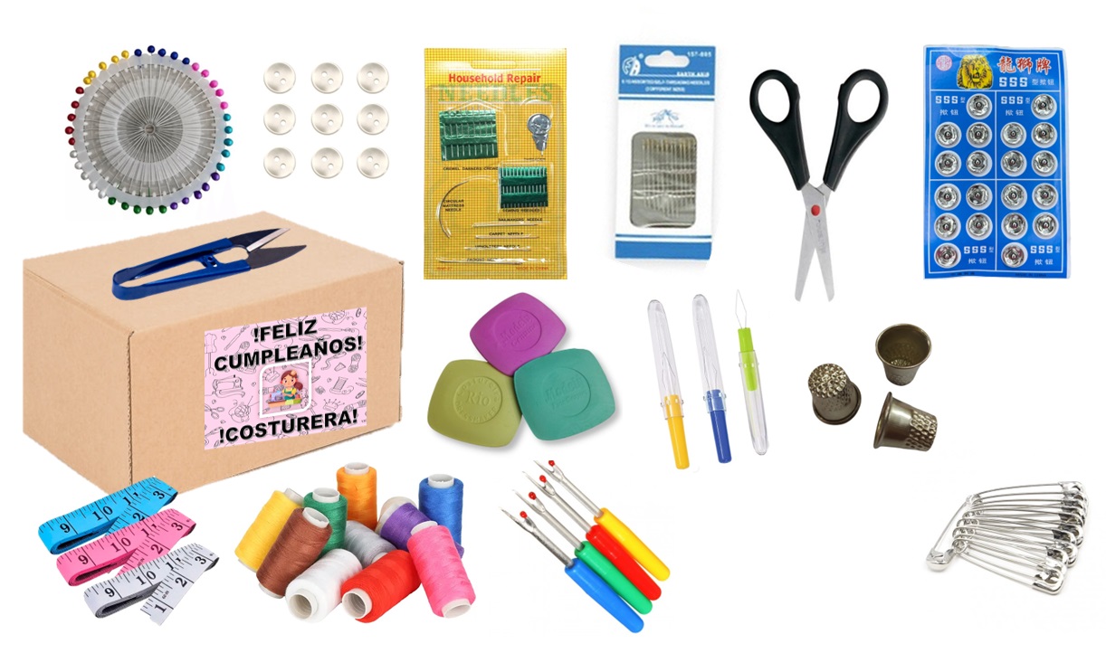 envase: es una caja de cartón- con un stikert de papel-todos los accesorios de costura.