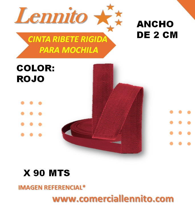 CINTA RIGIDA RIBETE COLOR ROJO DE 2 CM X 90MTS