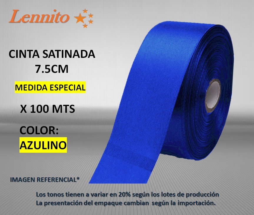 cinta satinada de 7.5 cm x 100 mts (Medida Especial) color Azulino