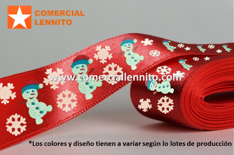 Cinta satinada muñeco de nieve de 2.5 cm color rojo paquete x 100 yds