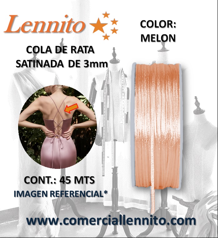 Cola de Rata Satinada de 3mm x 45 metros color Melón