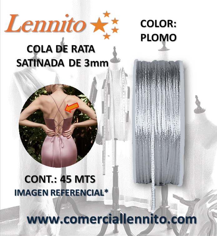 Cola de Rata Satinada de 3mm x 45 metros color Plomo