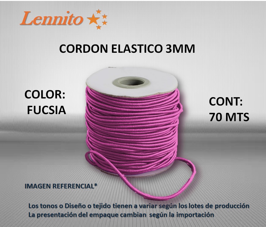 Cordón Elástico de 3mm Color fucsia x 70 MTS