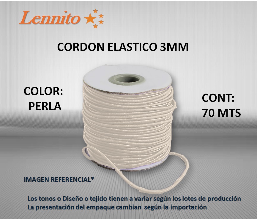 Cordón Elástico de 3mm Color Perla x 70 MTS