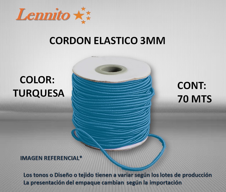 Cordón Elástico de 3mm Color Turquesa x 70 MTS