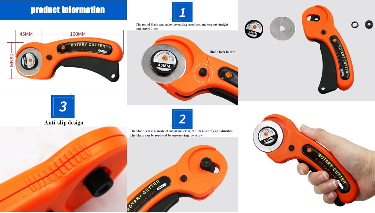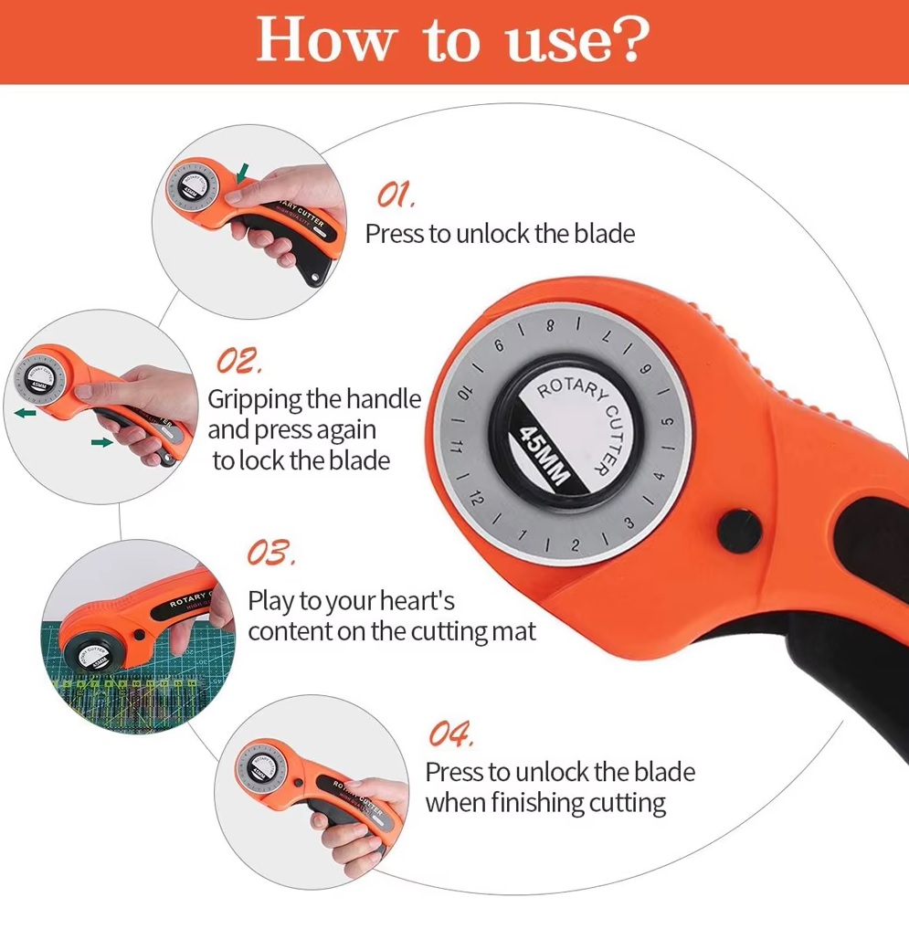 Nuevo cortador rotativo de 45mm, herramienta de corte Artesanal de cuero con mango ergonómico para tela DIY, costura de retales, artesanía acolchada