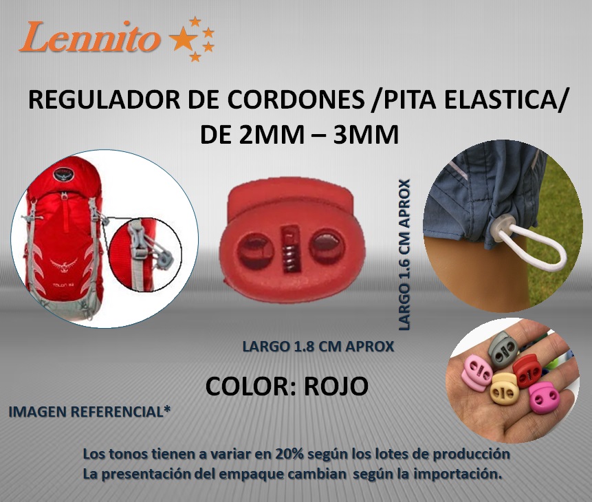 REGULADOR PARA CORDON DE PLASTICO / MODELO CHANCHITO COLOR ROJO