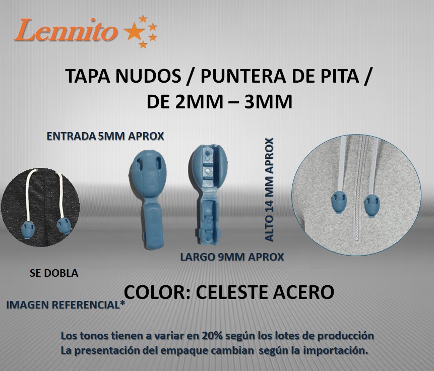 TAPA NUDO DE PLASTICO/PUNTERA PARA CORDON / MODELO GARRAPATA COLOR CELESTE ACERO