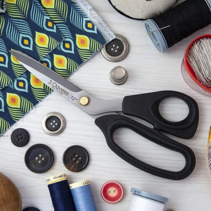 Tijeras Mango de Plástico Negro 12 Pulgadas – 3 Claveles